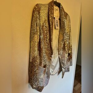 NEW 12th Tribe Genevieve Sequin Blazer Jacket Iridescent Gold Silver Small NWT