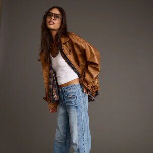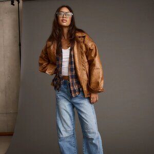 NEW 12th Tribe London Calling Cognac Oversized Faux Leather Jacket