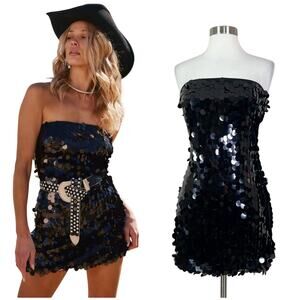 NEW 12th Tribe | Sequin Disc Strapless Sparkle Party Black Cocktail Mini Dress