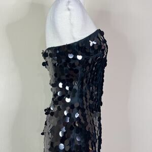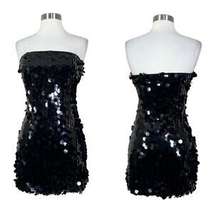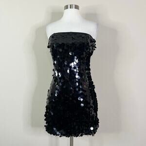 NEW 12th Tribe | Sequin Disc Strapless Sparkle Party Black Cocktail Mini Dress XS