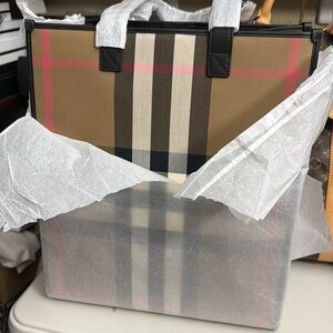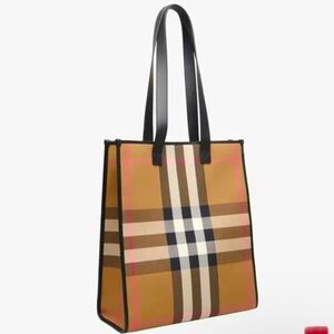 ๐ฅ NEW $1350 Burberry Tan Checkered Book Tote Bag authentic ๐ฅ NOVA CHECK! WOW!