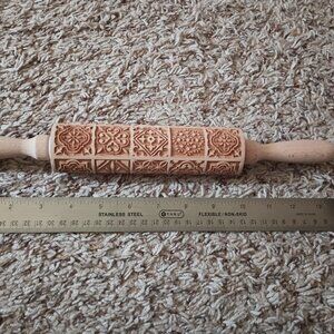 NEW 14" decorative wooden Rolling Pin with gorgeous intricate patterns. Smoke-free and pet-free home.