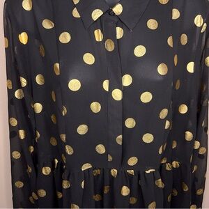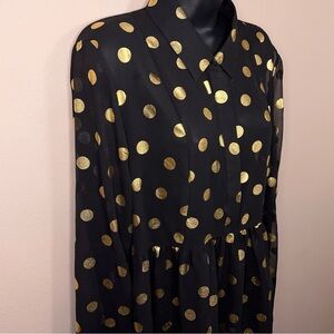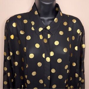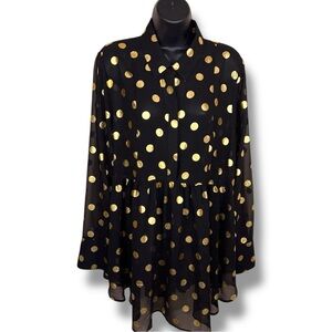 NEW 14/16 Lane Bryant Black Gold Polka Dot Tunic Blouse Long Sleeve NWT Retro