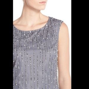 NEW $148 Adrianna Papell Pearl Beaded Mesh Top Blouse in Grey [SZ 14 16 ] #758