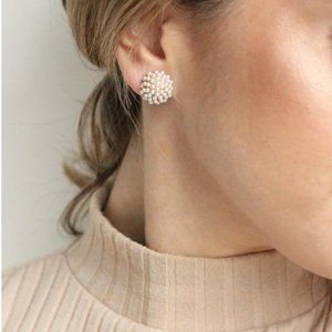 NEW - 14K Gold Pearl Pave Stud Earrings