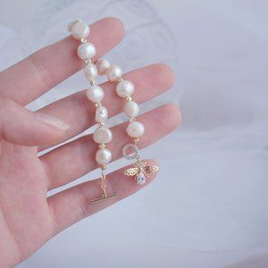 NEW 14K Gold Plated Bee Pearl Toggle Bracelet