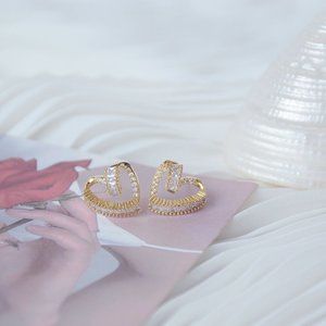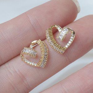 NEW 14K Gold Plated Diamond Heart Earrings a