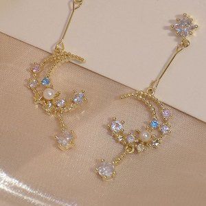 NEW 14K Gold Plated Diamond Moon Star Earrings