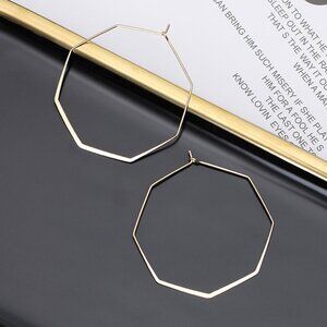 NEW 14K Gold Plated Octagonal Geometric Hoop Earrings