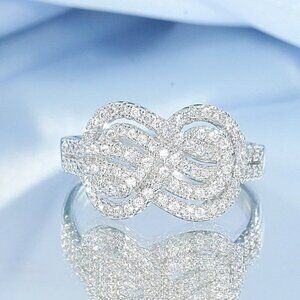 NEW 14K White Gold Plated Cubic Zirconia Pave Infinity Knot Ring Sz. 8