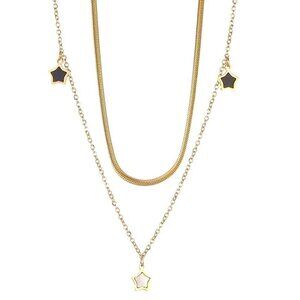 NEW 14K Yellow Gold Lucky Star Layered Luxury Necklace