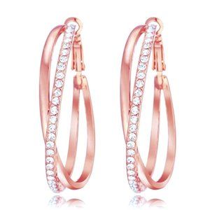 NEW 14k Rose Gold Over Silver Diamond Hoop Earrings