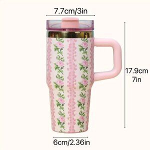 {NEW} 14oz Floral Pattern Stainless Steel Water Bottle Pink/Green