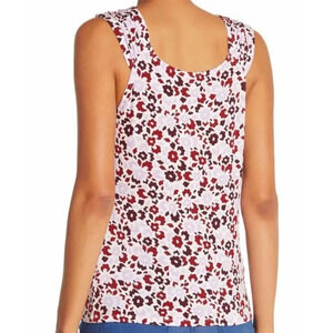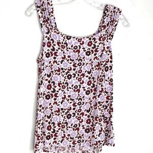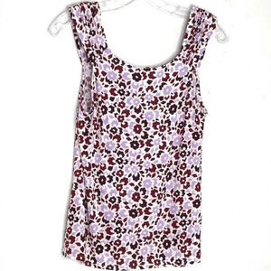 NEW 14th and Union Women Size Large Shirred Shoulder Burgundy Floral Tank Top