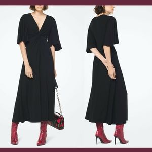 A deep V-neckline and knotted waist instill this midi dress with subtle allure, while fluttering sleeves complement the fluid silhouette. Finish it with python boots for a modern pairing.