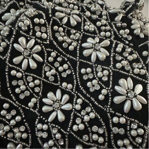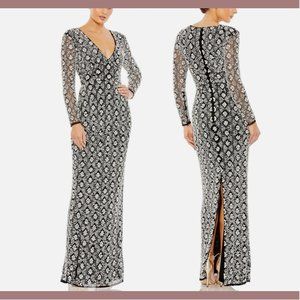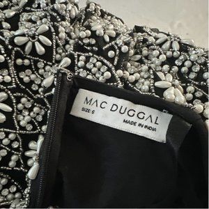 NEW $1,598 Mac Duggal [ 6 ] Fully Beaded Floral Pearls Column Gown Black #S733