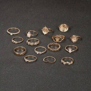 NEW 15pcs Gold Ring Set - Faith, Protection, Cross & Fatima’s Palm Vintage Style