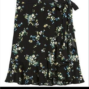 NEW 16 BANANA REPUBLIC RUFFLE WRAP BLACK BLUE GREEN flower Floral Mini Skirt NWT