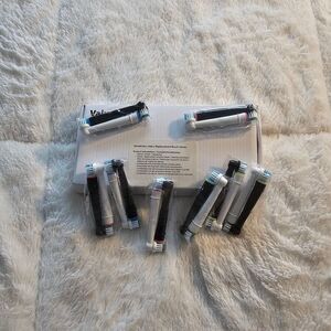 Set of replacement toothbrush heads in white and black with colorful rings. Compatible with Oral- B various electric toothbrush models.