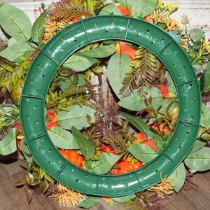 NEW pretty 16" artificial mixed greenery, faux pumpkins, gourds and colorful orange floral wreath for fall decor! Plastic ring back, easy to hang and add bow should you choose! Perfect piece for Autumn, fall French Country, Cottage or Farmhouse decor!