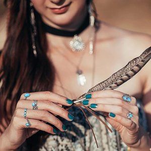 Bohemian Jewelry Size:Western Necklaces Length 45-51cm Comes With 5cm Extension Chain,Adjustable Turquoise Bracelets, Turquoise Rings For Women Size 5-9,Suitable For Most People.