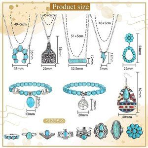 NEW 16Pcs Turquoise Jewelry for Women Boho Bohemian Turquoise Jewelry Se…