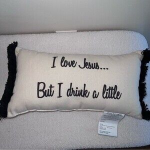 NEW! 17" I Love Jesus but I Drink a Little Cotton Rectangular PILLOW