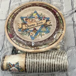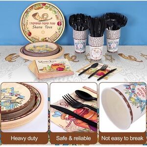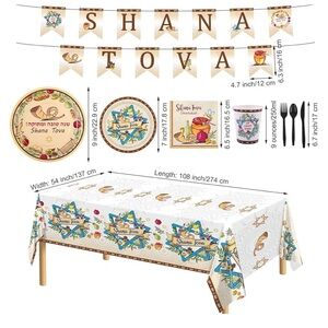 NEW 170 Pieces Rosh Hashanah Decorations Rosh Hashanah Tablecloth Rosh Hashanah Paper Plates Napkins Cups Shana Tova Banner for Jewish New Year Holiday Party Decorations