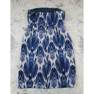 NEW $178 J. Crew Diana 100% Silk Ikat Dress Strapless Blue White coctkatil sz 2