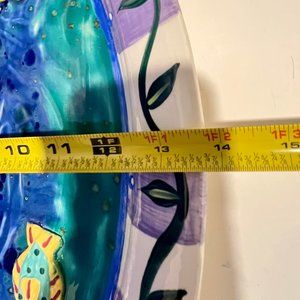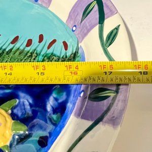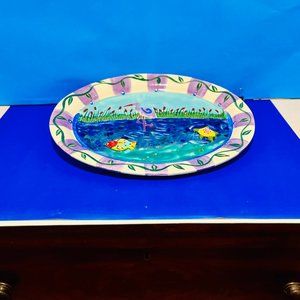 NEW… 18” Nautical Serving Platter, by Chesapeake Bay Company, 18”(L) x 13.75”(W) x 1”(H) Approximate, Ceramic, 18”(L) x 13.75”(W) x 1”(H) Approximate, Decorative Hand-Painted Scene, to Include; Blue Heron, Tortoise, Fish, Cattails… Beautiful