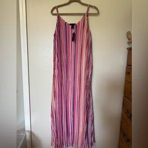 NEW Lane Bryant pleated elegant multicolored fully lined Striped Pink Maxi Dress