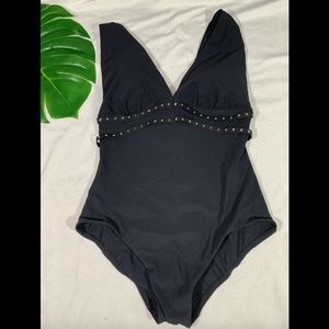 NEW $188 Amoressa Romancing the Stone One-Piece Swimsuit Black [ SZ 10 ] #3508