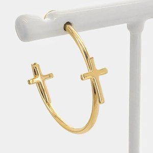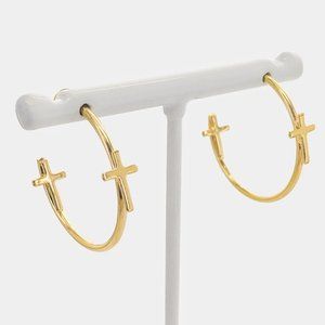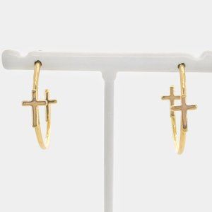 NEW 18K Gold Filled Double Cross Hoop Earrings