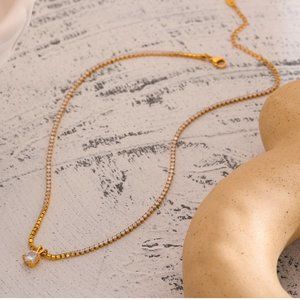 ^NEW 18K Gold Plated 2CT Solitaire Diamond Round Diamond Chain Necklace
