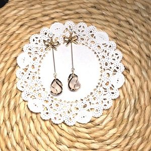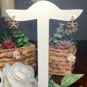 NEW 18K Gold Plated 925, Elegant Caged White Tiger’s Eye, Bow Drop Earrings