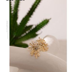 ^NEW 18K Gold Plated Baguette Diamond Spike Firework Earrings
