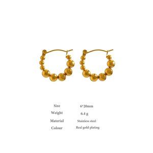 ^NEW 18K Gold Plated Bead Round Hoop Earrings