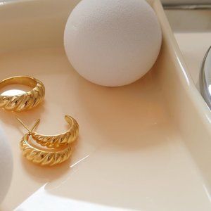 NEW 18K Gold Plated Braided Croissant Open Hoops