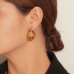 NEW 18K Gold Plated Double Cross Interlocking Round Hoop Earrings