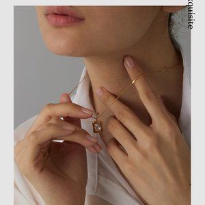 ^NEW 18K Gold Plated Emerald Cut Diamond Square Pendant Necklace