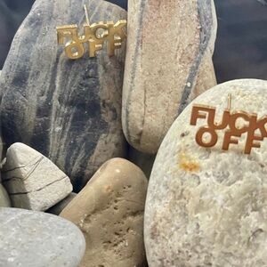 NEW 18K Gold Plated “F*ck Off” Post Stud Earrings Over 316L Stainless Steel