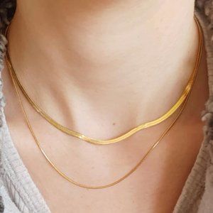NEW 18K Gold Plated Flat Herringbone Snake Chain Double Layer Necklace