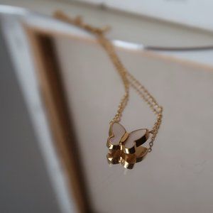 NEW 18K Gold Plated Mother of Pearl Butterfly Necklace