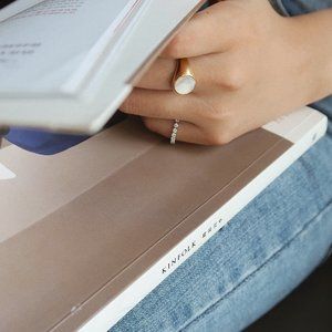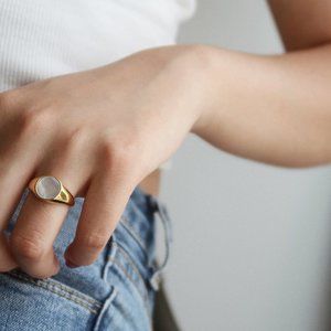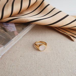 NEW 18K Gold Plated Mother of Pearl Round Signet Ring