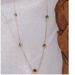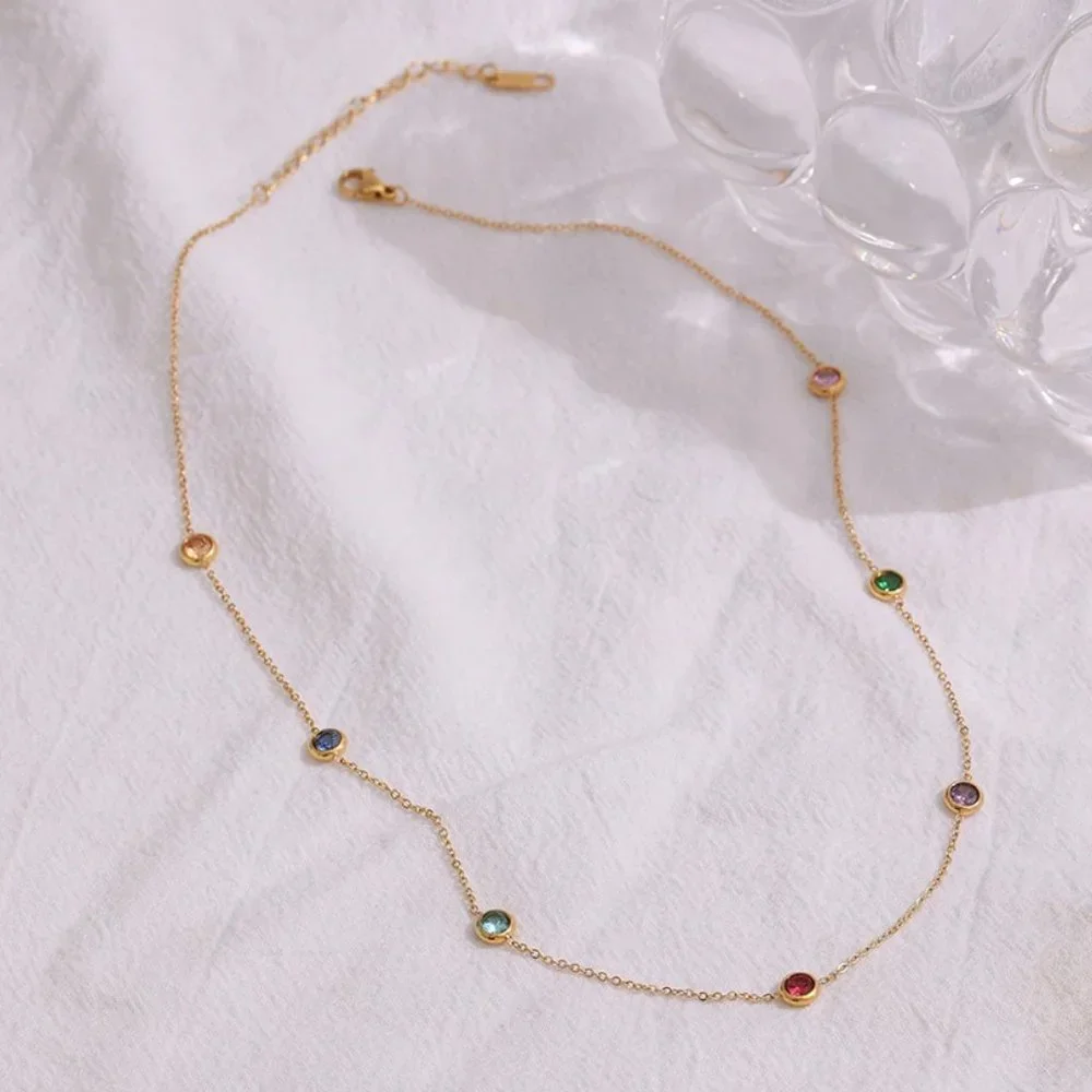 NEW 18K Gold Plated Multi Color Gemstone Necklace