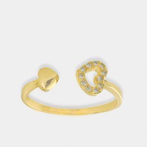 NEW 18K Gold Plated Pave CZ Heart Open Adjustable Ring