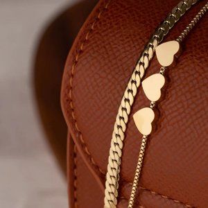 NEW 18K Gold Plated Triple Heart Double Layer Chain Bead Bracelet