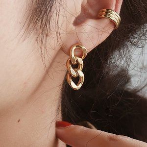 NEW 18K Gold Plated Triple Link Earrings