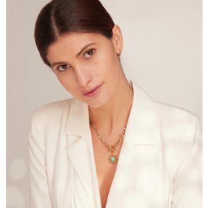 NEW 18K Gold Plated Turquoise Sun Circle Toggle Bar Link Chain Necklace