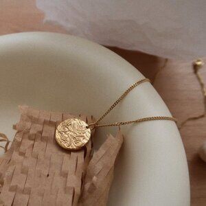 NEW 18K Gold Plated Vintage Embossed Lion Coin Necklace